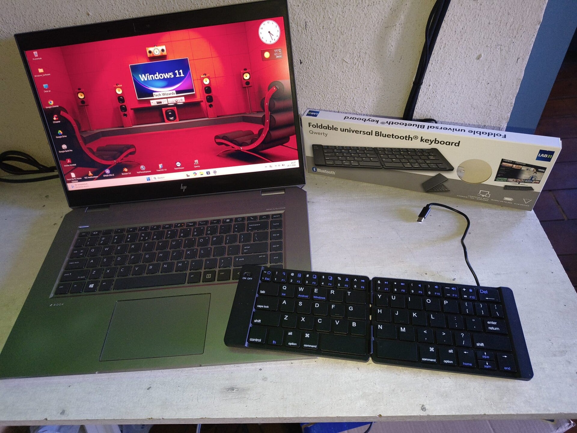 Je krijgt er daarom ook een Opvouwbaar draadloos Bluetooth toetsenbord bij , zie fotos, het valt haast niet op